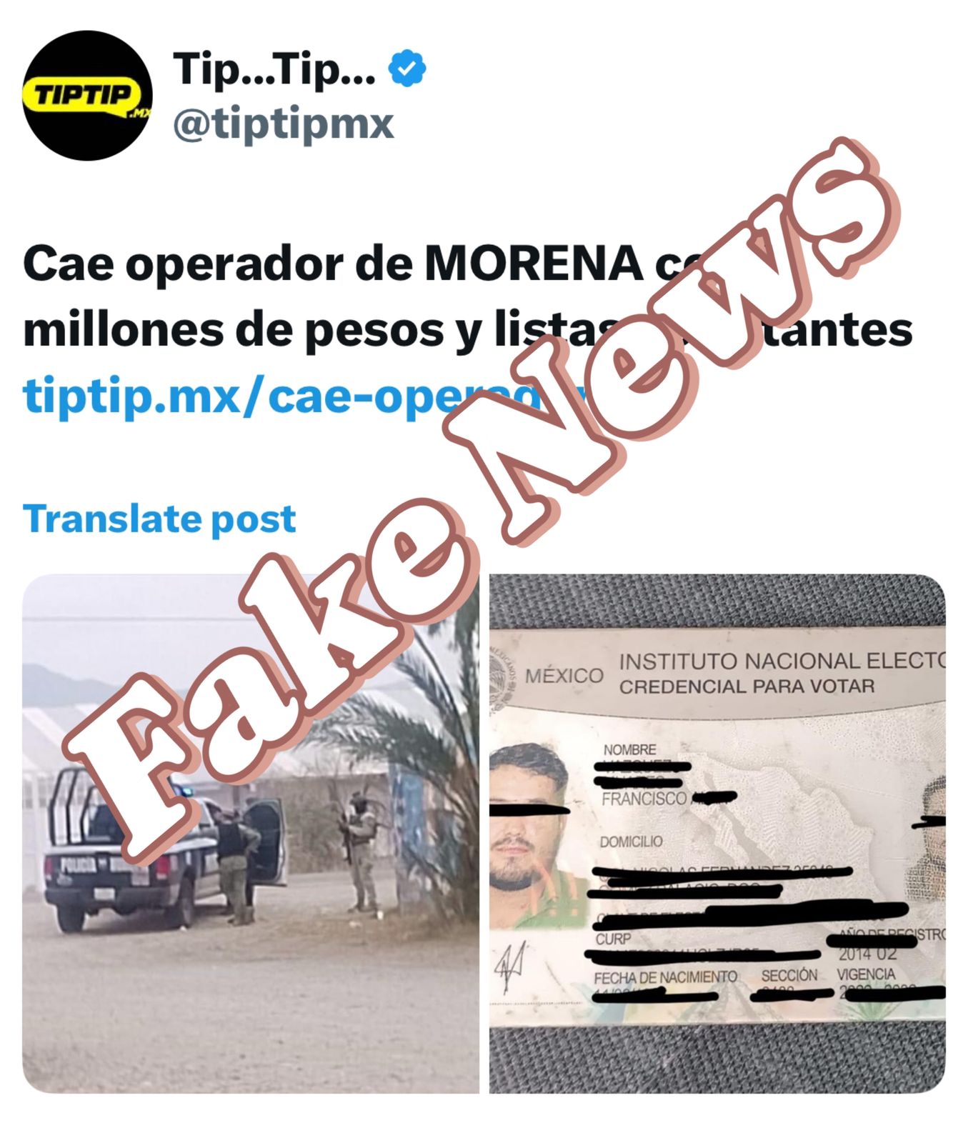 Falsa la nota sobre supuesto operador de Morena detenido con 2 millones de pesos en La Laguna