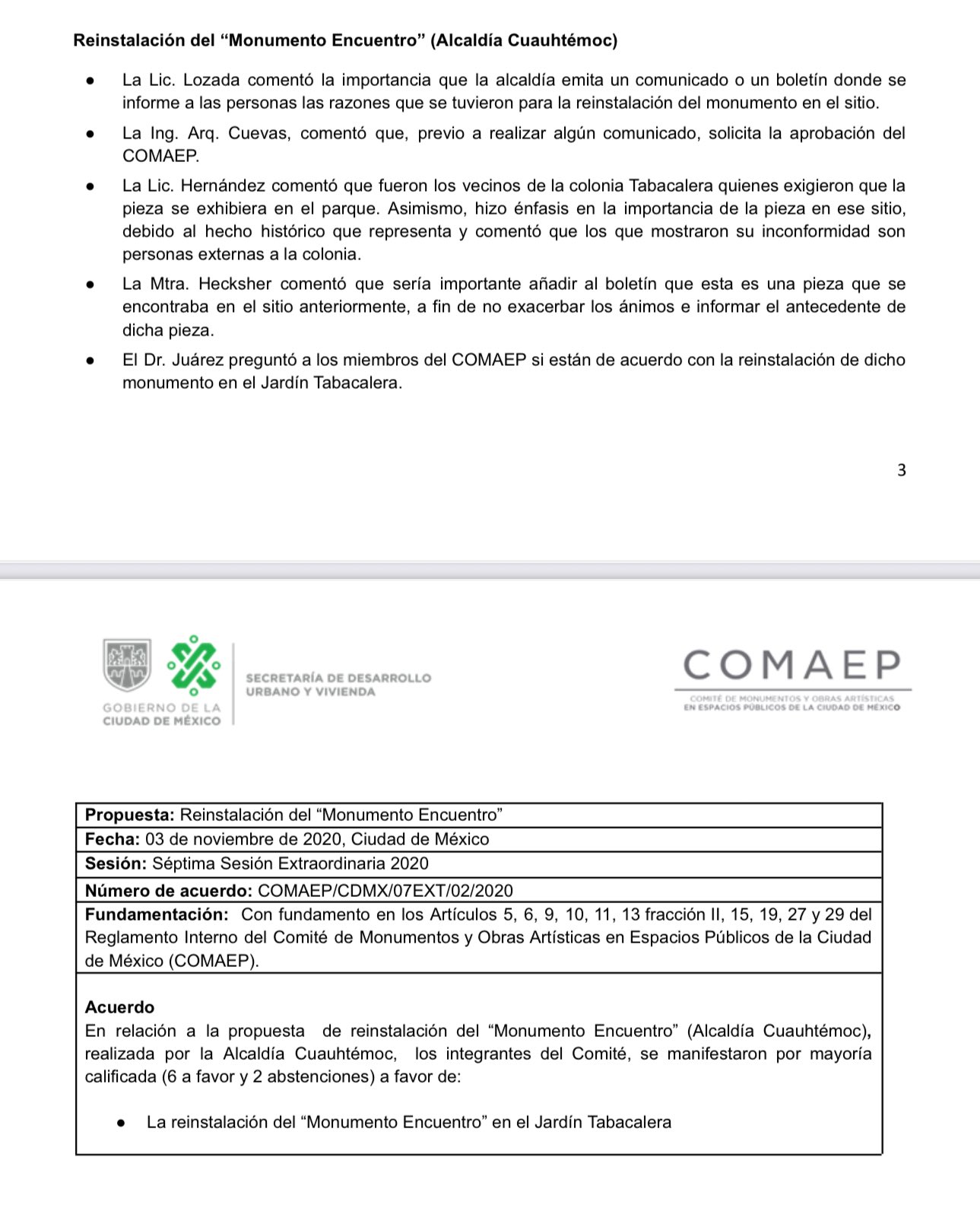 El 3 de noviembre de 2020, en sesión extraordinaria, el Comité de Monumentos y Obras Artísticas en Espacios Públicos de la Ciudad de México (COMAEP) autorizó oficialmente la instalación de dichas esculturas. El proyecto fue impulsado por organizaciones de amistad con Cuba, con respaldo institucional y conforme a los procedimientos que marca la normatividad local. Es decir, nada clandestino, nada improvisado.