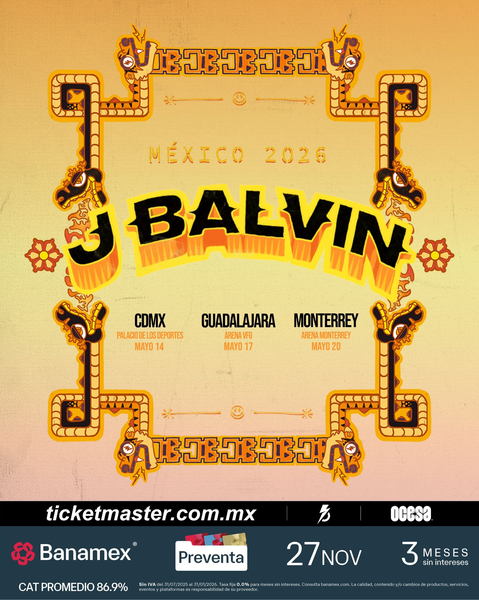 • Preventa Banamex Elite: 26 de noviembre, 9:00 AM.